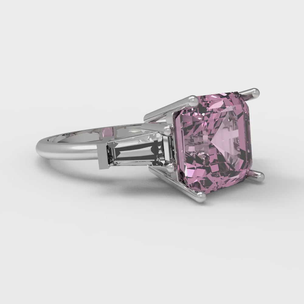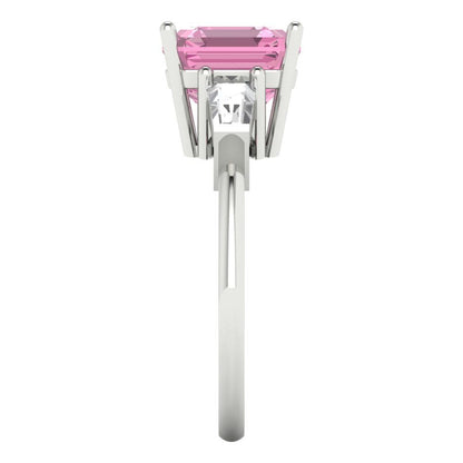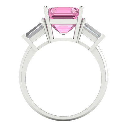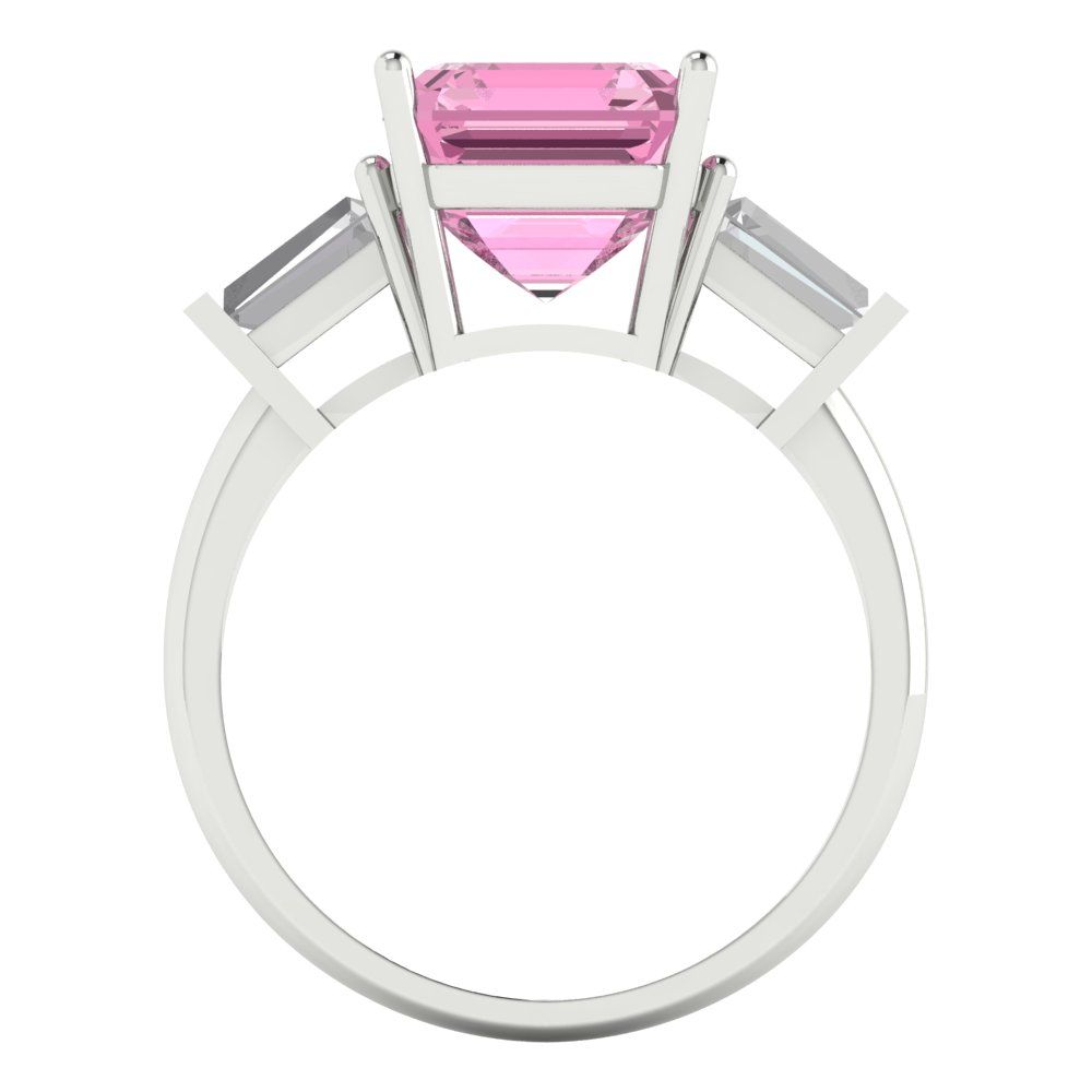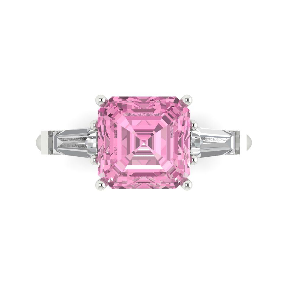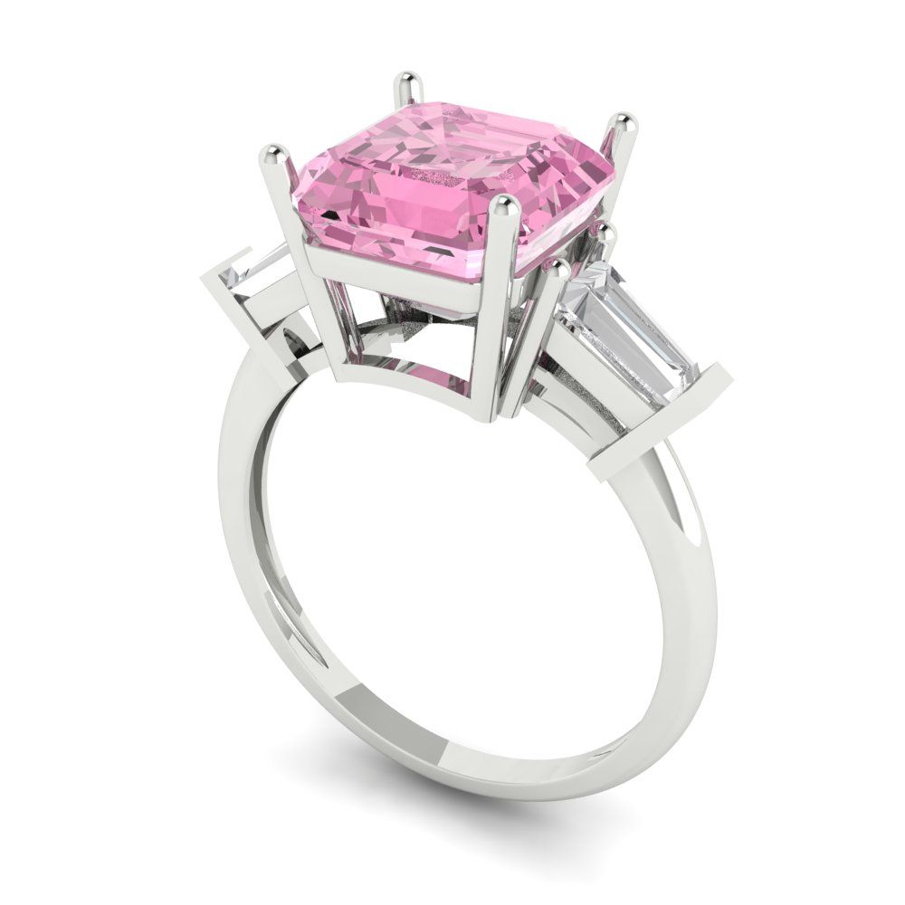 3 cttw Zirconia Simulated Pink Diamond Three-Stone Engagement Ring - Solid Gold (VVS1, Asscher Cut,8.0mm)
