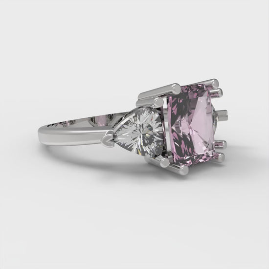 2.82 cttw Zirconia Simulated Pink Diamond Three-Stone Engagement Ring - Solid Gold (VVS1, Emerald Cut,8x6mm)