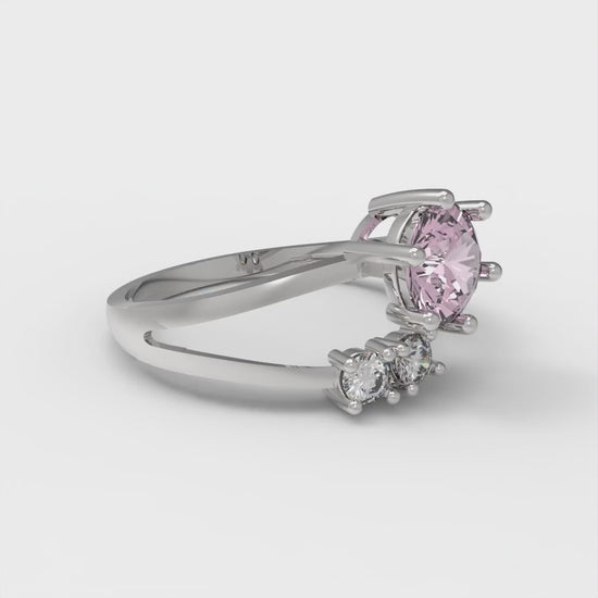 0.87 cttw Zirconia Simulated Pink Diamond Three-Stone Engagement Ring - Solid White Gold (VVS1, Round Cut,6.0mm)