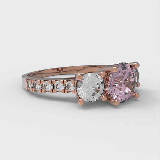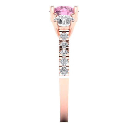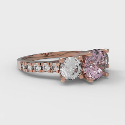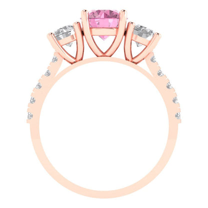 1.97 cttw Zirconia Simulated Pink Diamond Three-Stone Engagement Ring - Solid Gold (VVS1, Round Cut,6.5mm)