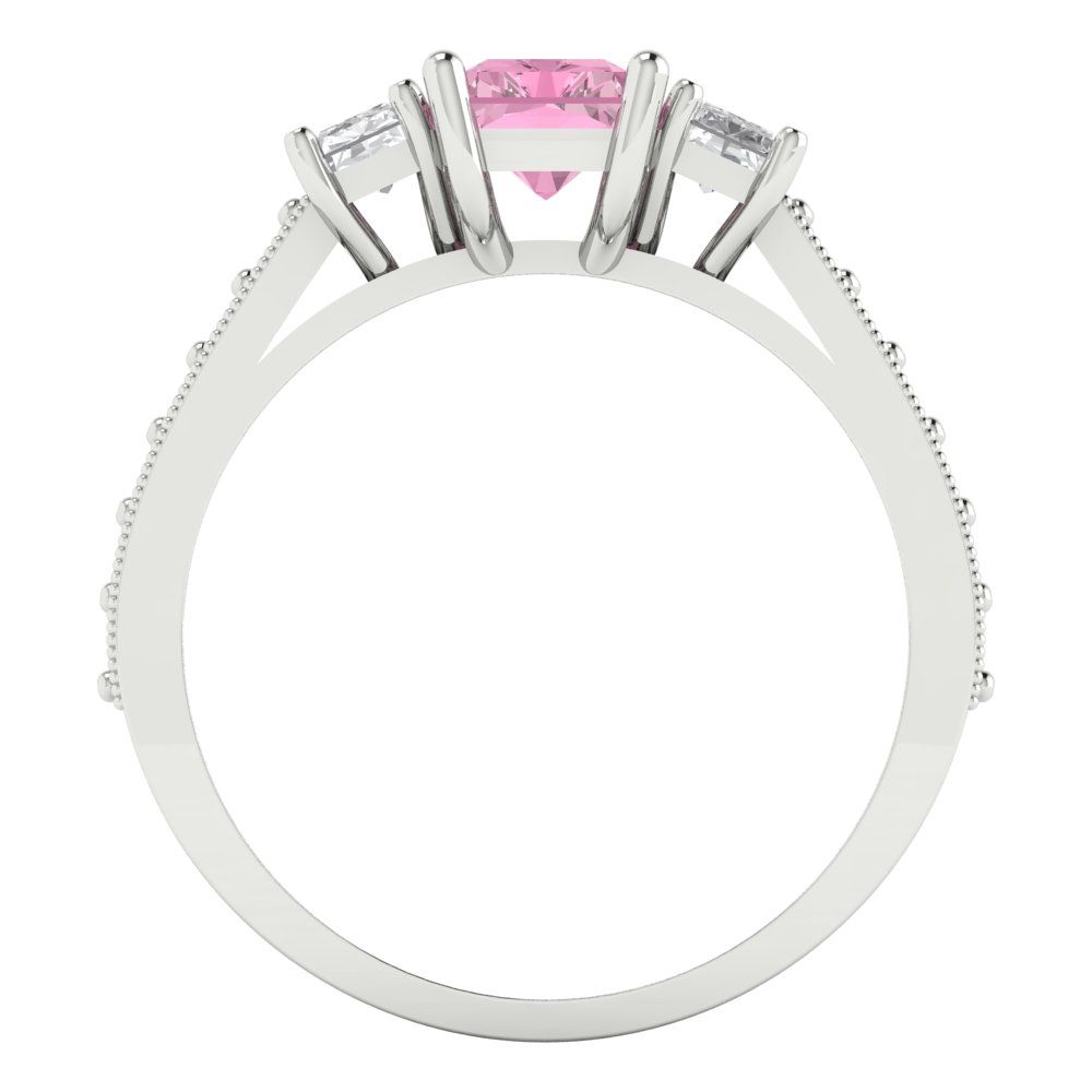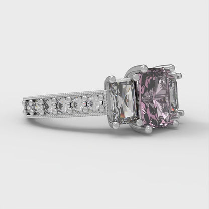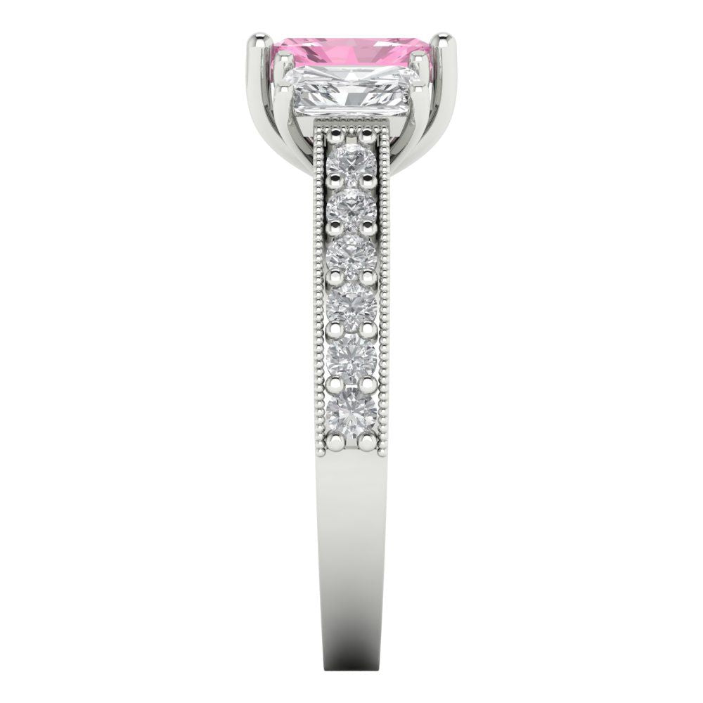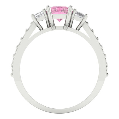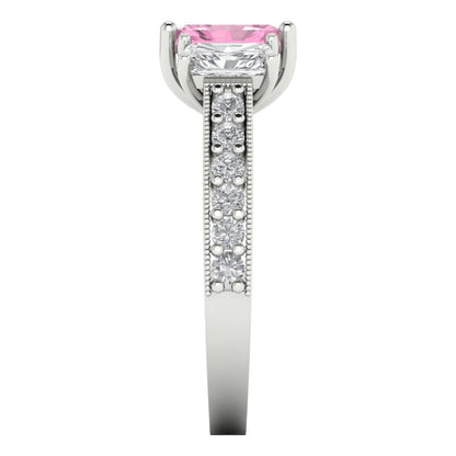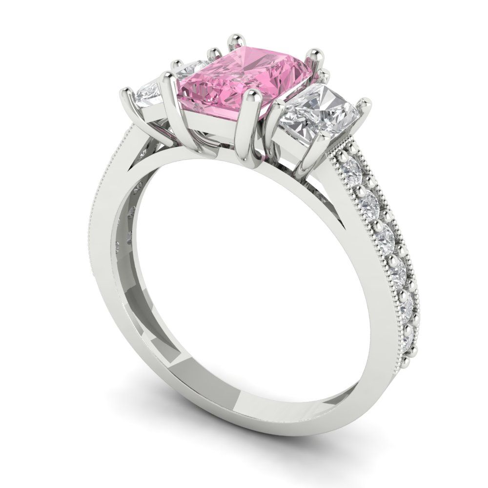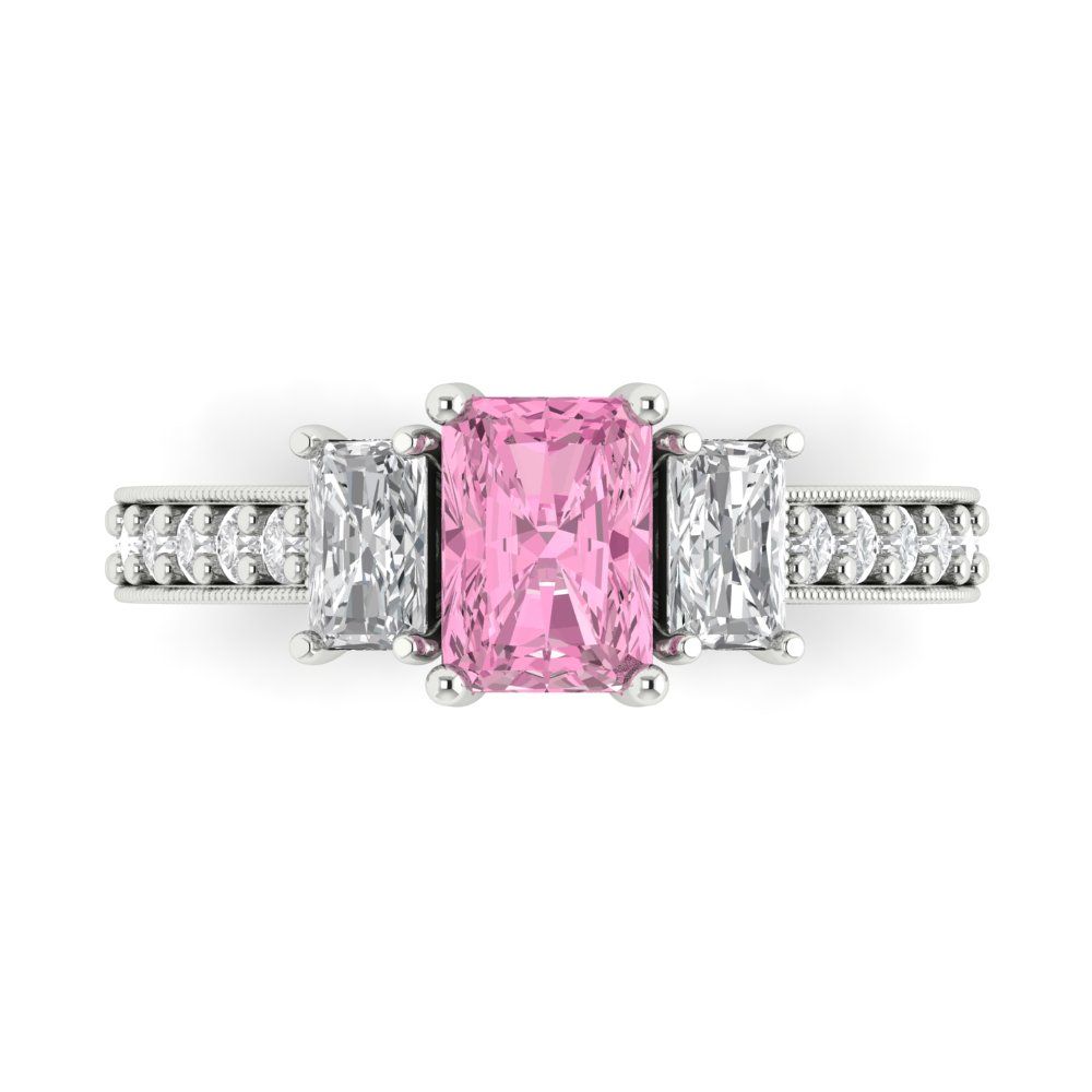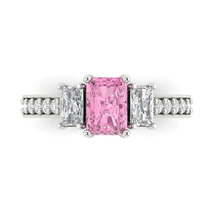 1.88 cttw Zirconia Simulated Pink Diamond Three-Stone Engagement Ring - Solid Gold (VVS1, Emerald Cut,7x5mm)