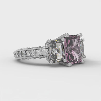 3.61 cttw Zirconia Simulated Pink Diamond Three-Stone Engagement Ring - Solid Gold (VVS1, Emerald Cut,8x6mm)