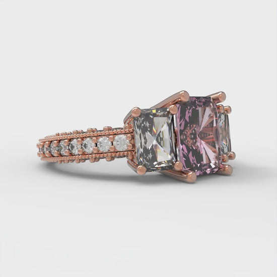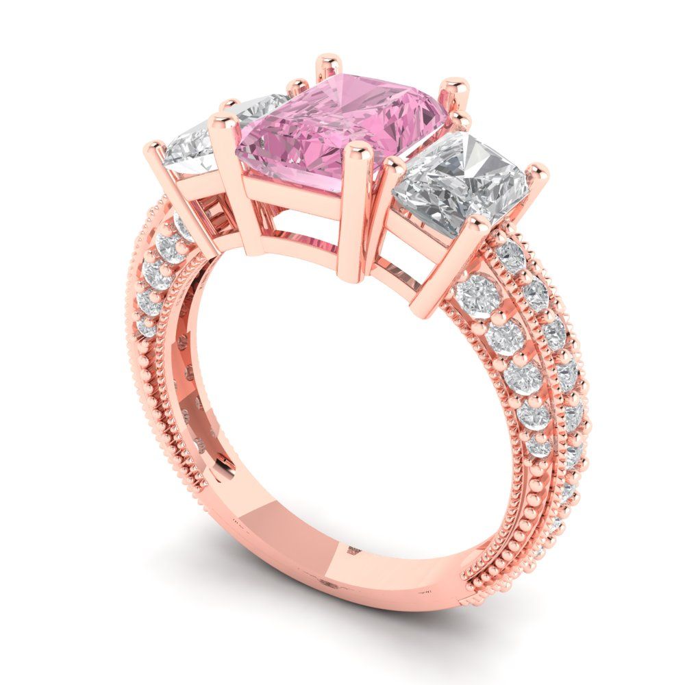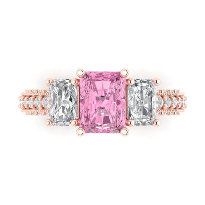 3.61 cttw Zirconia Simulated Pink Diamond Three-Stone Engagement Ring - Solid Gold (VVS1, Emerald Cut,8x6mm)