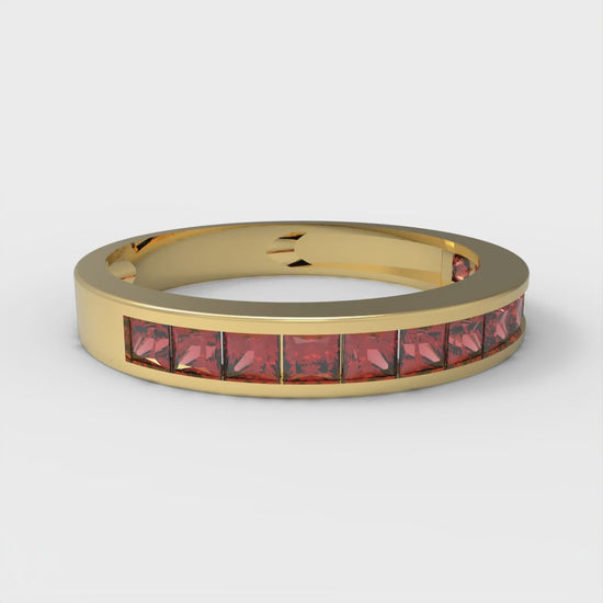 0.78 cttw Simulated Pink Tourmaline Princess Cut Yellow Gold Eternity Wedding Band