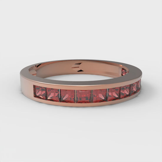 0.78 cttw Simulated Pink Tourmaline Princess Cut Rose Gold Eternity Wedding Band