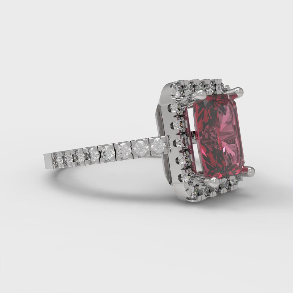 1.86 cttw Simulated Pink Tourmaline Hidden Halo Engagement Ring - Solid Gold (Emerald Cut,7.5x5.5mm)