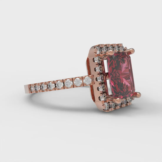 1.86 cttw Simulated Pink Tourmaline Hidden Halo Engagement Ring - Solid Gold (Emerald Cut,7.5x5.5mm)