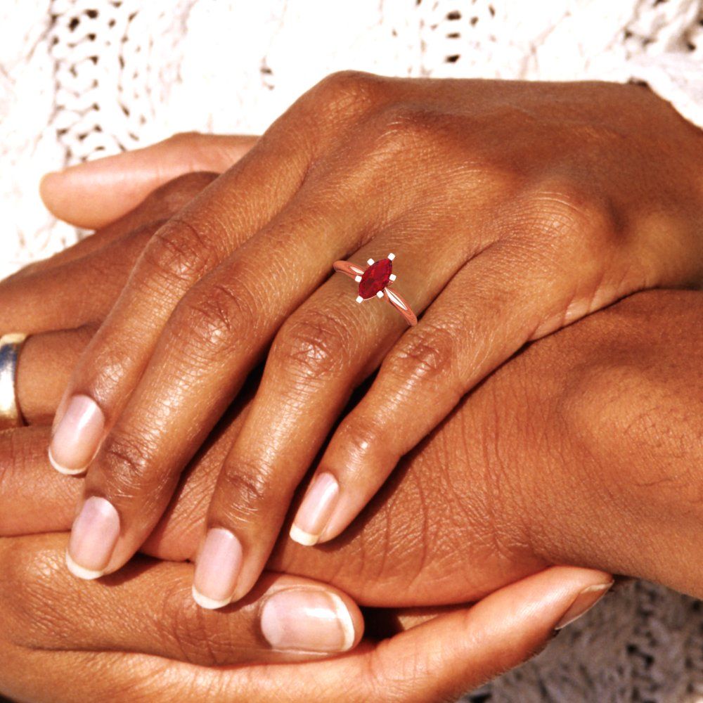 1 cttw Simulated Pink Tourmaline Solitaire Engagement Ring - Solid Gold (Marquise Cut,10x5mm)