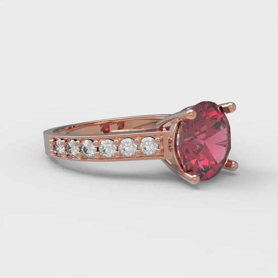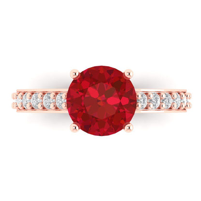 2.3 cttw Simulated Pink Tourmaline Solitaire with Zirconia Simulated Diamond Accents Engagement Ring - Solid Gold (Round Cut,8.0mm)