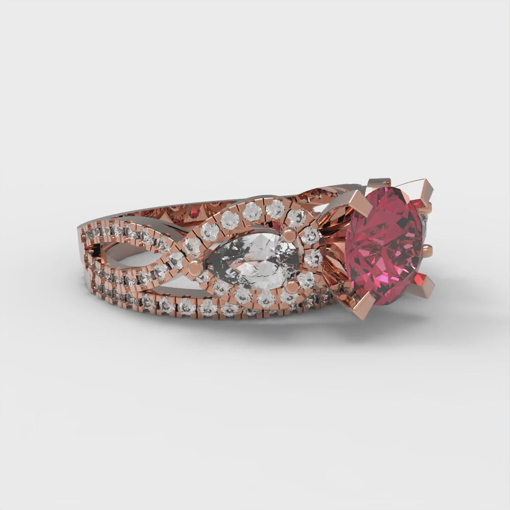 1.925 cttw Round Cut Simulated Pink Tourmaline Bridal Set - Solid Rose Gold Engagement Ring & Wedding Band
