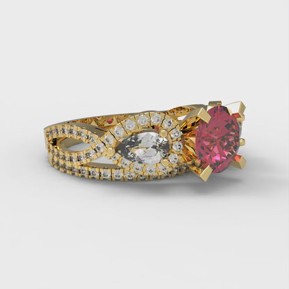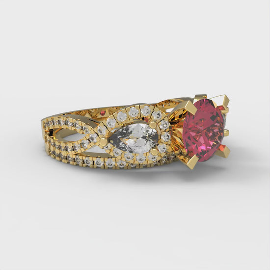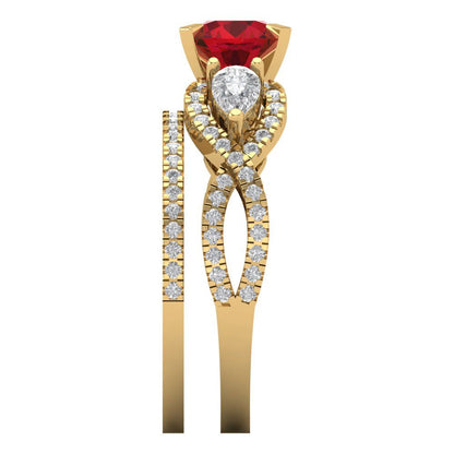 1.925 cttw Round Cut Simulated Pink Tourmaline Bridal Set - Solid Yellow Gold Engagement Ring & Wedding Band