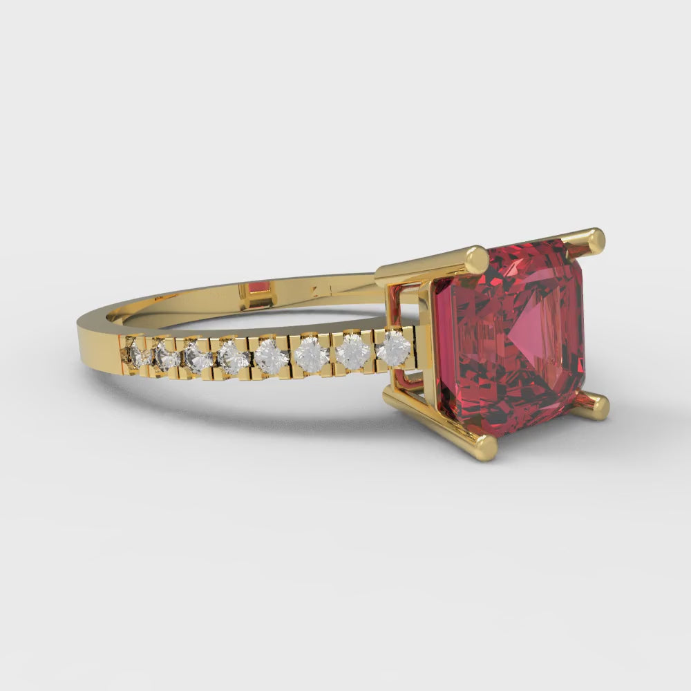 2.7 cttw Simulated Pink Tourmaline Solitaire with Zirconia Simulated Diamond Accents Engagement Ring - Solid Gold (Asscher Cut,6.5mm)
