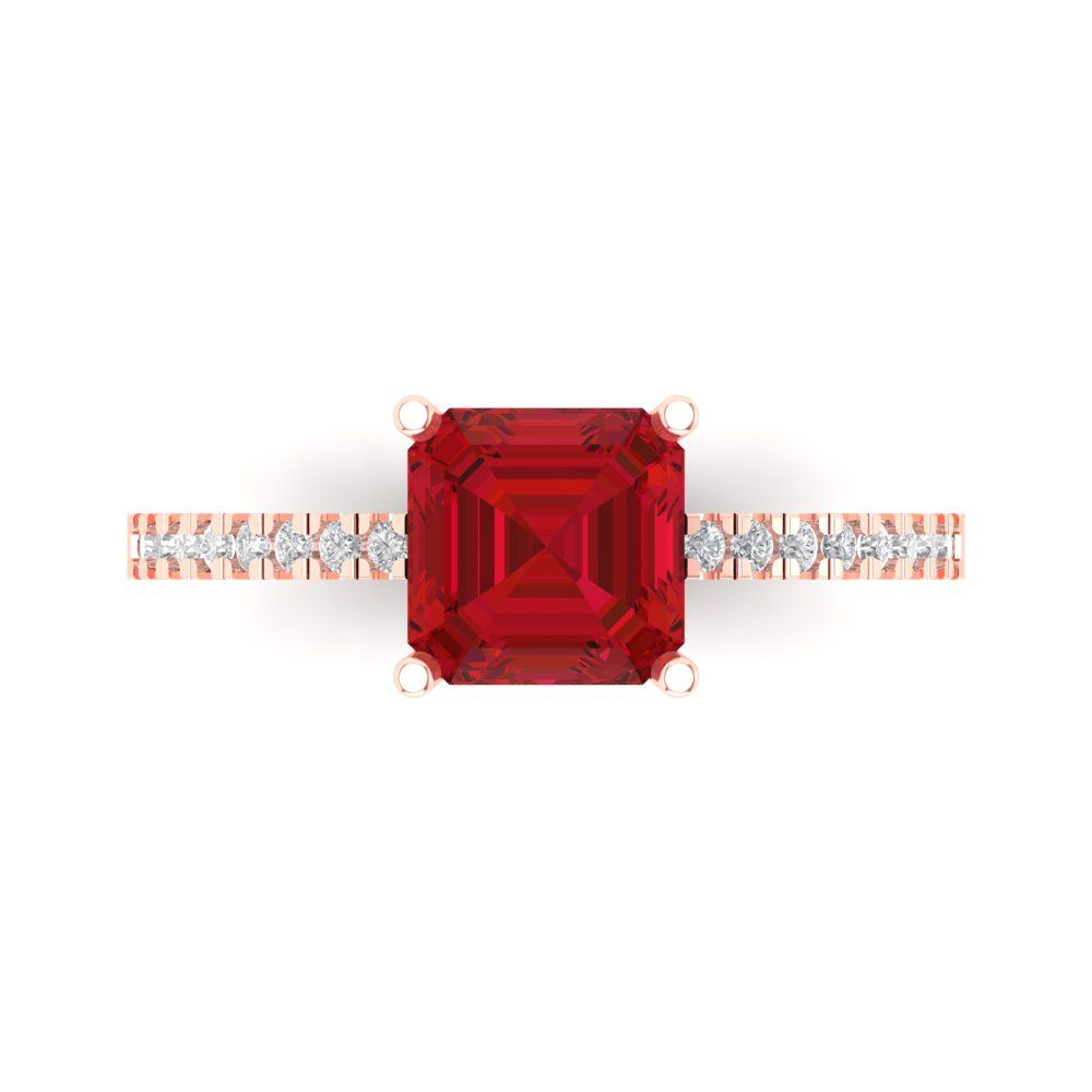 2.7 cttw Simulated Pink Tourmaline Solitaire with Zirconia Simulated Diamond Accents Engagement Ring - Solid Gold (Asscher Cut,6.5mm)