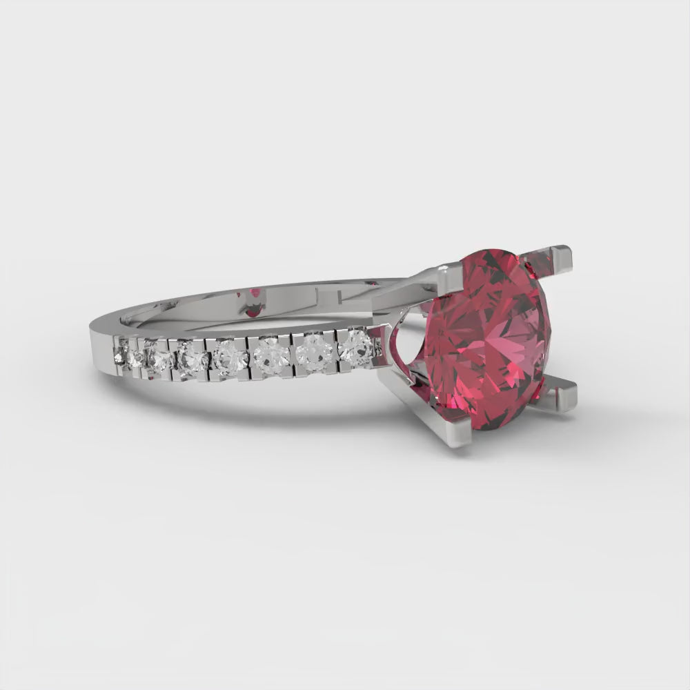 1.71 cttw Simulated Pink Tourmaline Solitaire with Zirconia Simulated Diamond Accents Engagement Ring - Solid Gold (Round Cut,7.5mm)