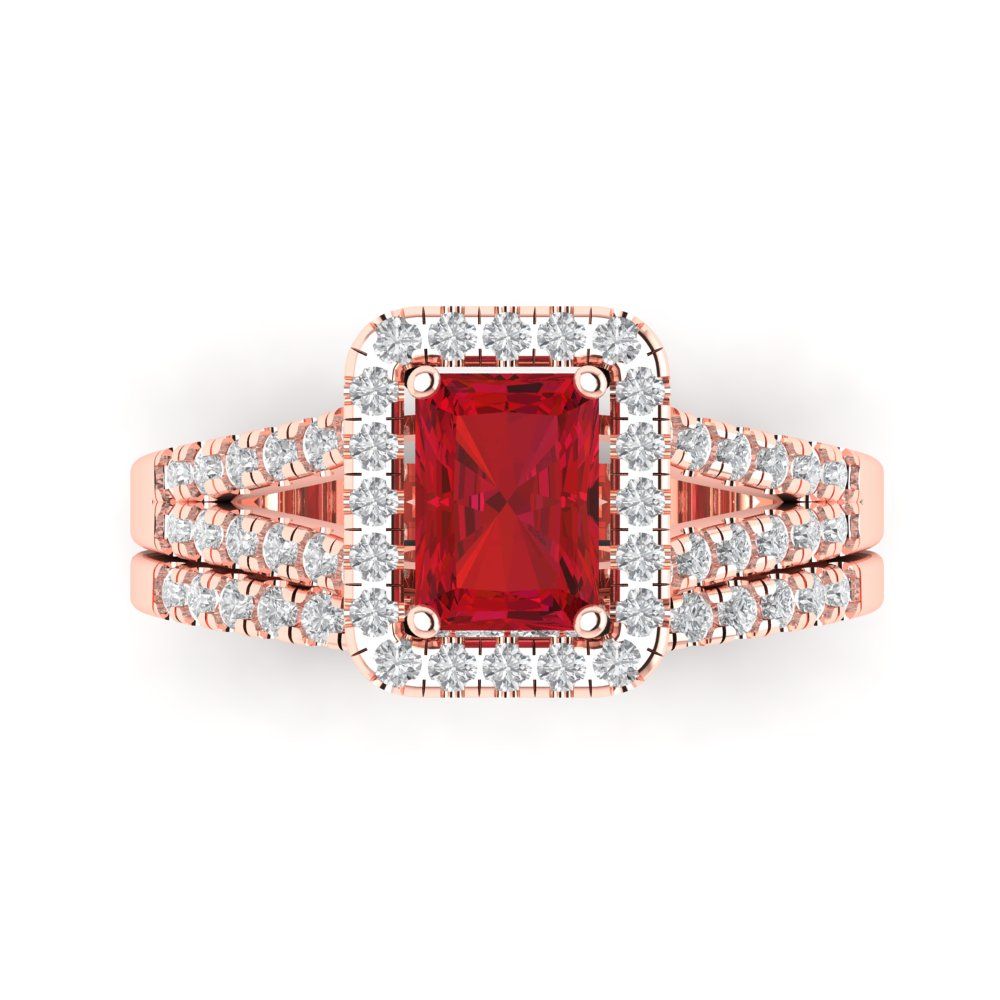 1.72 cttw Emerald Cut Simulated Pink Tourmaline Bridal Set - Solid Rose Gold Engagement Ring & Wedding Band