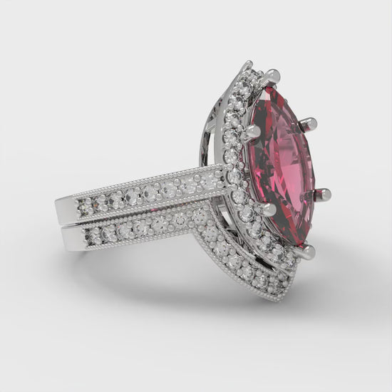 2.4875 cttw Marquise Cut Simulated Pink Tourmaline Bridal Set - Solid White Gold Engagement Ring & Wedding Band