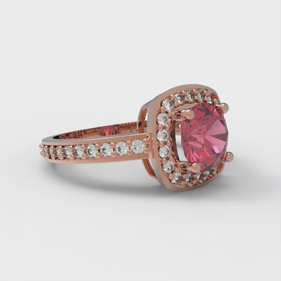 1.335 cttw Simulated Pink Tourmaline Solitaire with Zirconia Simulated Diamond Accents Engagement Ring - Solid Gold (Round Cut,6.5mm)