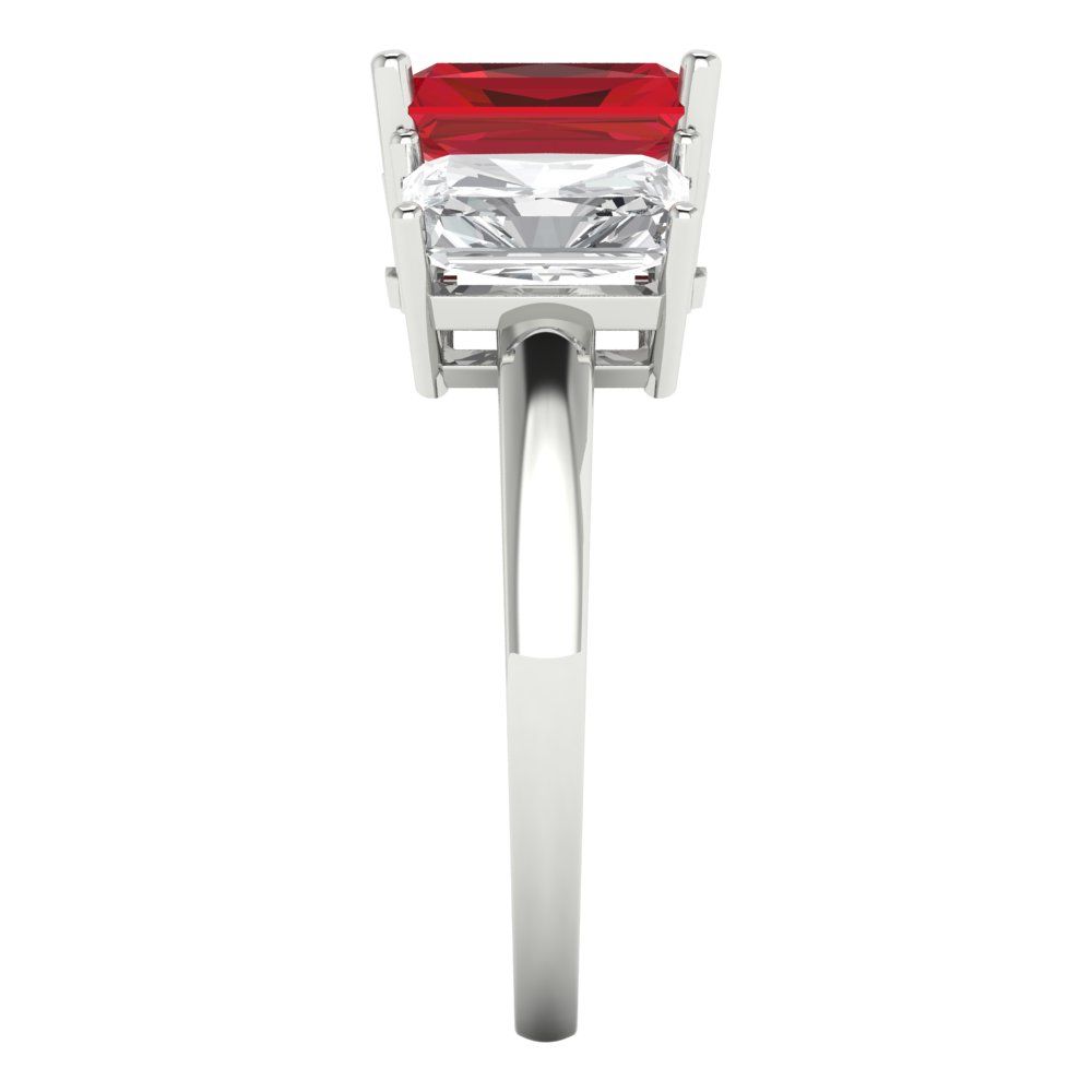 4 cttw Simulated Pink Tourmaline Three-Stone Engagement Ring - Solid Gold (Emerald Cut,8x6mm)