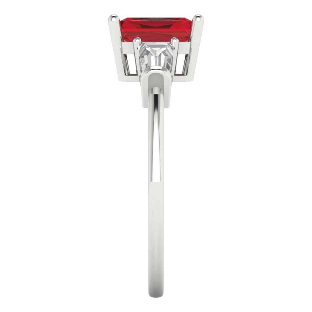 1.5 cttw Simulated Pink Tourmaline Three-Stone Engagement Ring - Solid Gold (Emerald Cut,7.0x5.0mm)