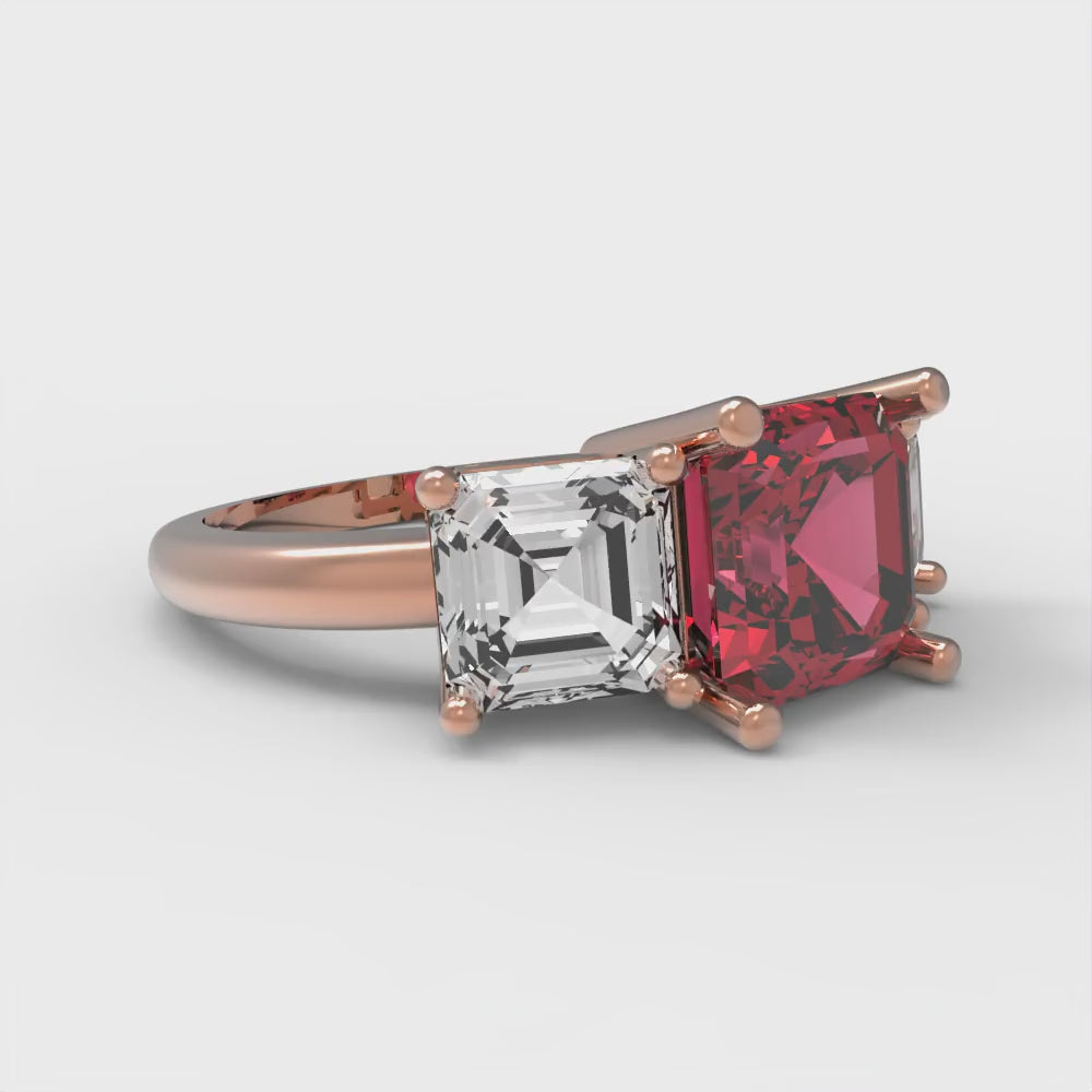 4 cttw Simulated Pink Tourmaline Three-Stone Engagement Ring - Solid Gold (Square Emerald Cut,7.0X7.0mm)