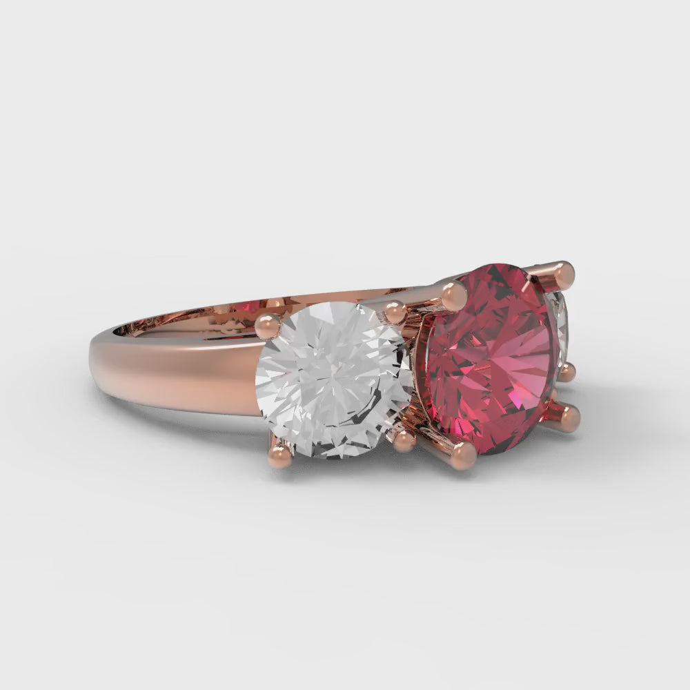 3 cttw Simulated Pink Tourmaline Three-Stone Engagement Ring - Solid Gold (Round Cut,7.5mm)
