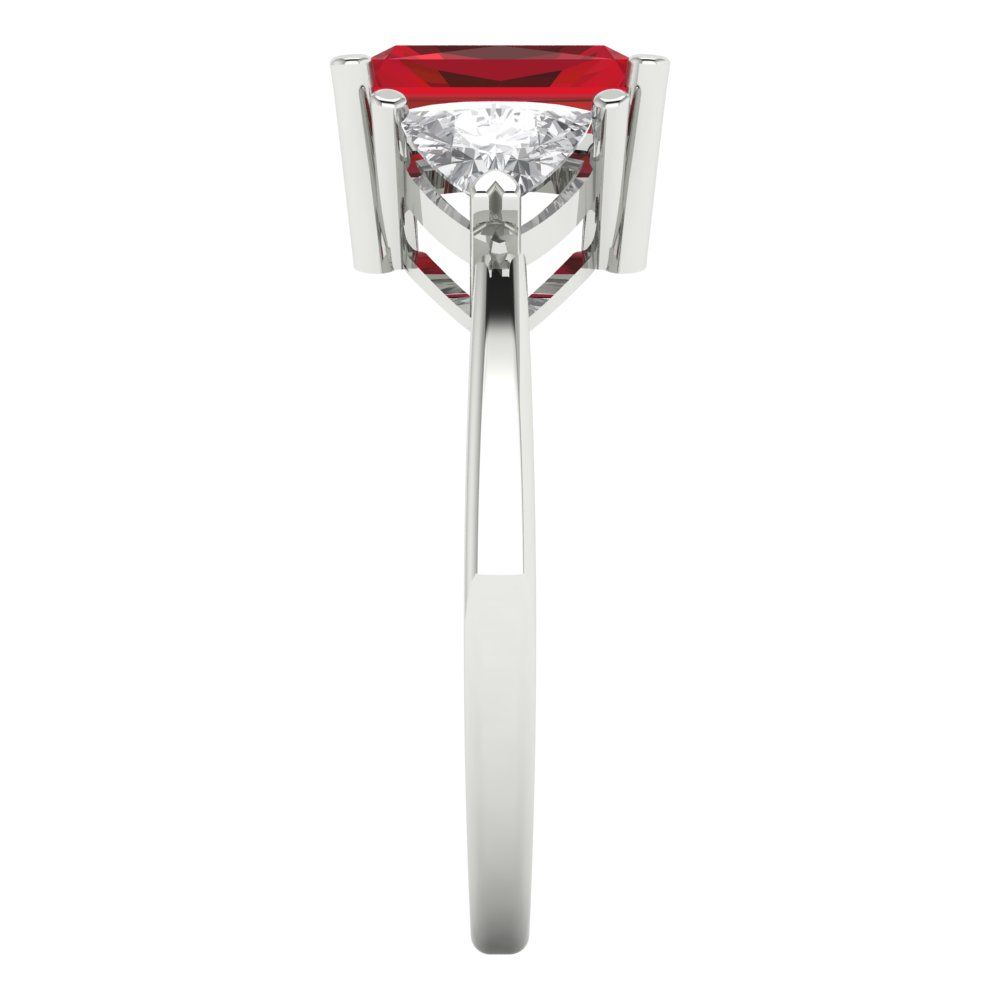 2.82 cttw Simulated Pink Tourmaline Three-Stone Engagement Ring - Solid Gold (Emerald Cut,8x6mm)