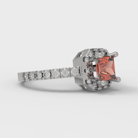 0.89 cttw Zirconia Simulated Red Diamond Hidden Halo Engagement Ring - Solid Gold (VVS1, Princess Cut,4.5mm)