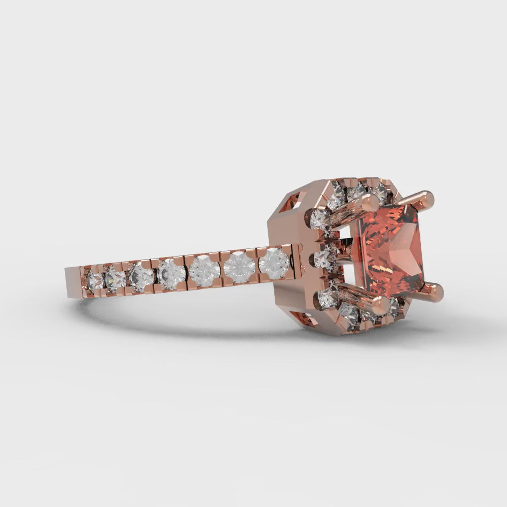 0.89 cttw Zirconia Simulated Red Diamond Hidden Halo Engagement Ring - Solid Gold (VVS1, Princess Cut,4.5mm)