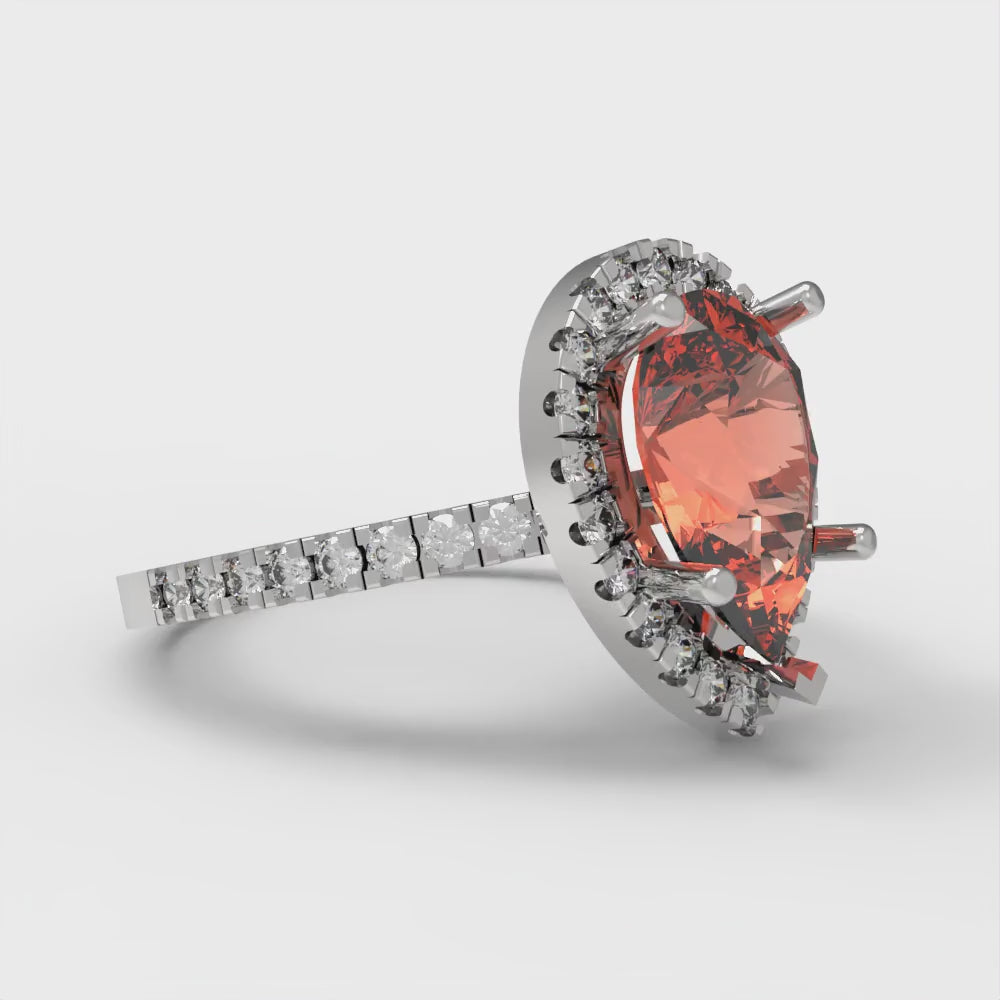 2.38 cttw Zirconia Simulated Red Diamond Hidden Halo Engagement Ring - Solid Gold (VVS1, Pear Cut,10x7mm )