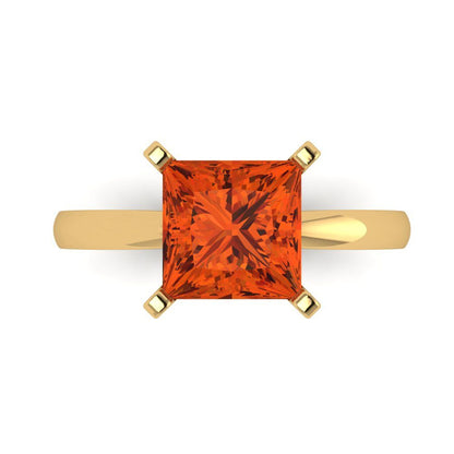 3 cttw Zirconia Simulated Red Diamond Solitaire Engagement Ring - Solid Gold (VVS1, Princess Cut,8.0mm)