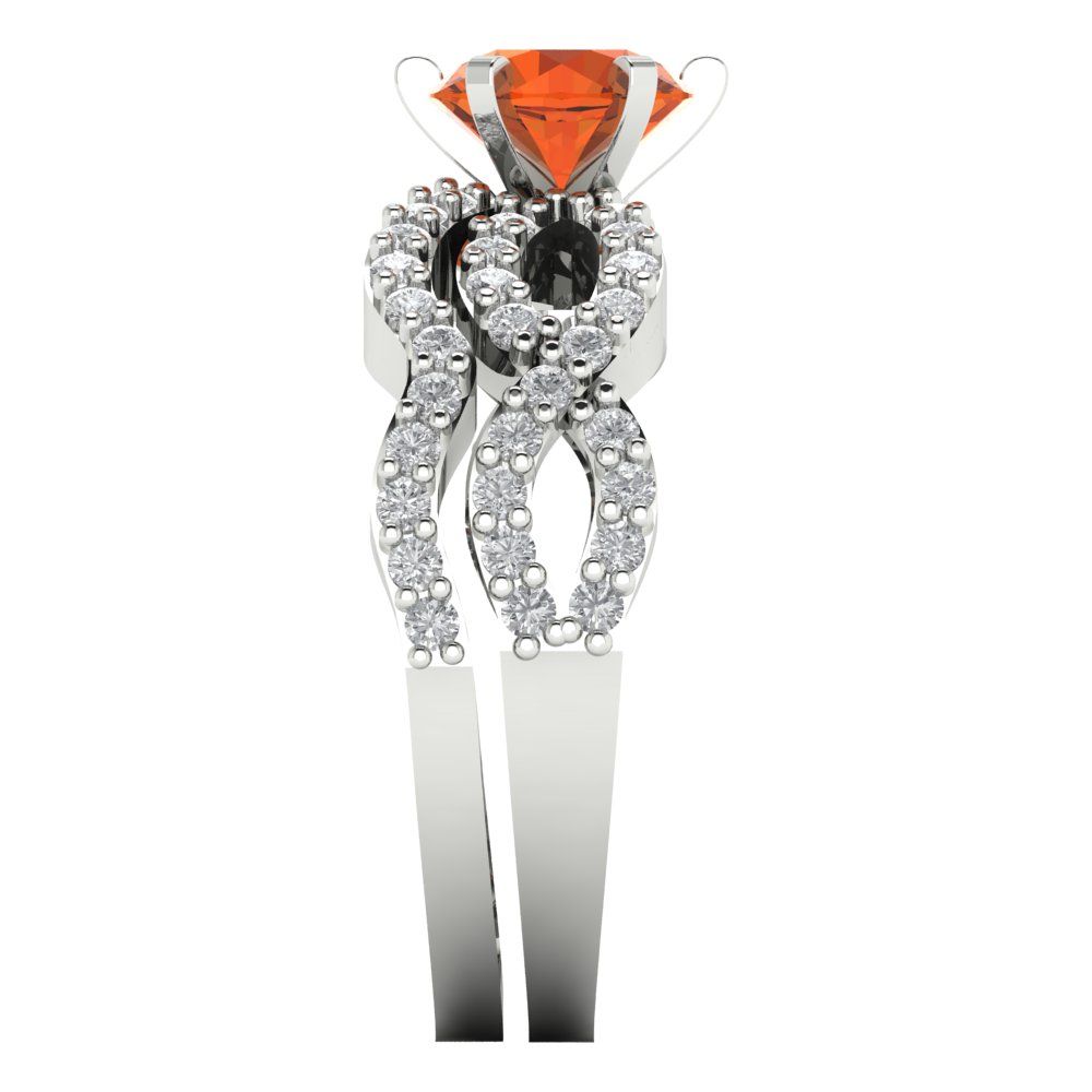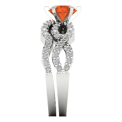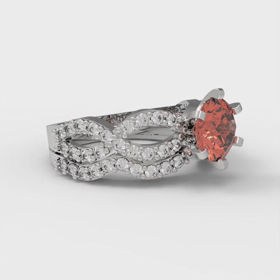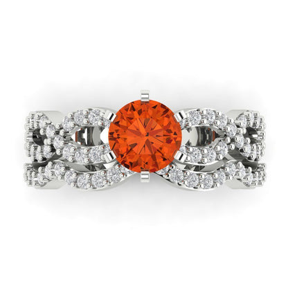 1.57 cttw Round Cut Simulated Red Diamond Bridal Set - Solid White Gold Engagement Ring & Wedding Band