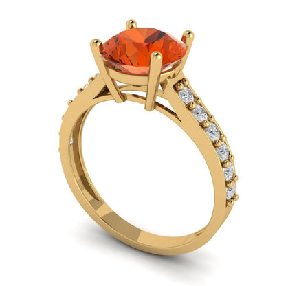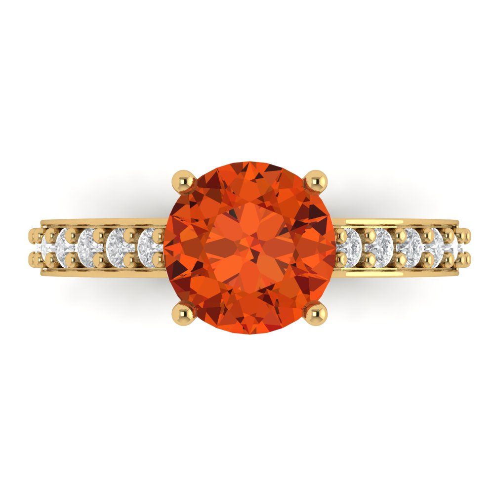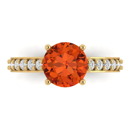 2.3 cttw Zirconia Simulated Red Diamond Solitaire with Zirconia Simulated Diamond Accents Engagement Ring - Solid Gold (VVS1, Round Cut,8.0mm)
