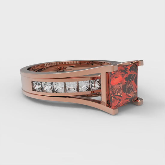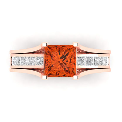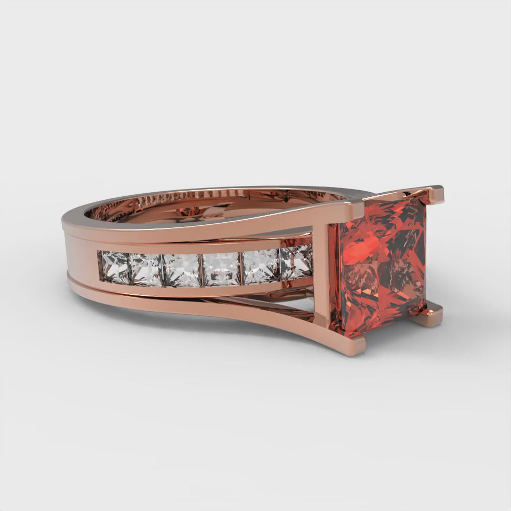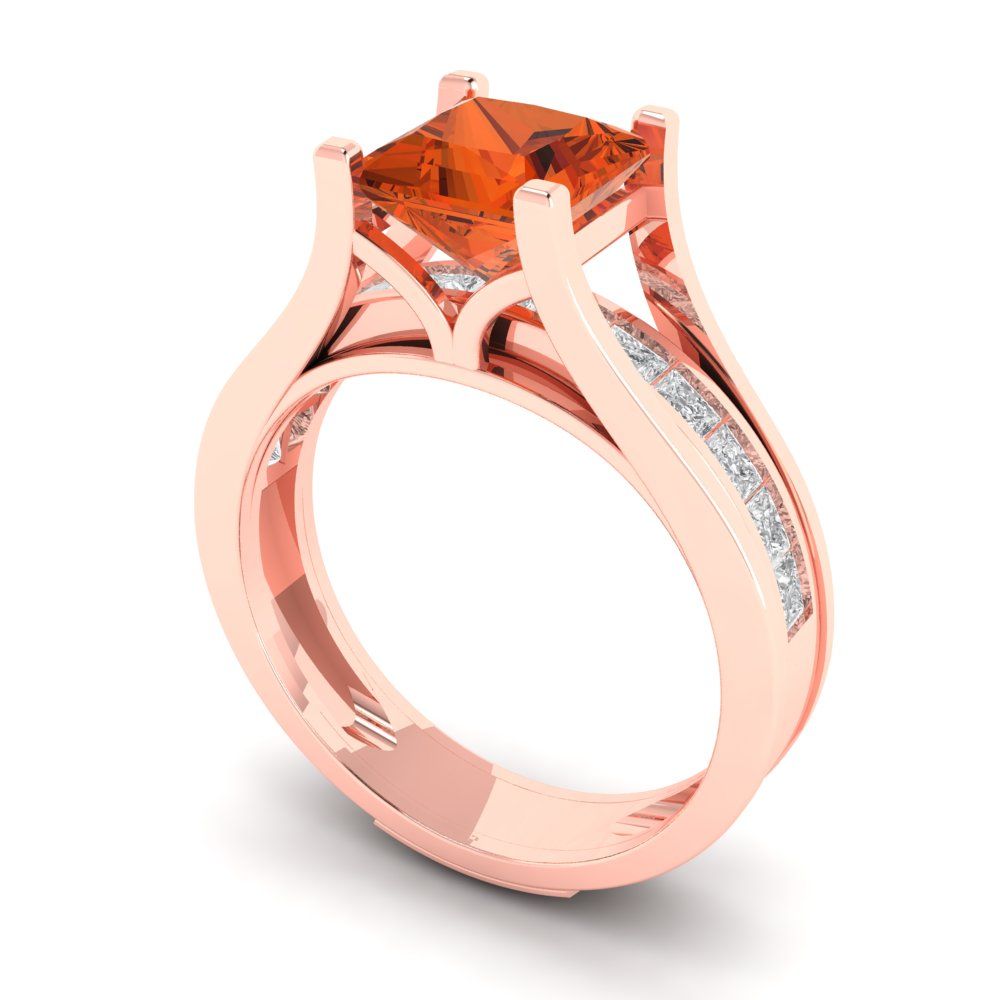 2.28 cttw Princess Cut Simulated Red Diamond Bridal Set - Solid Rose Gold Engagement Ring & Wedding Band