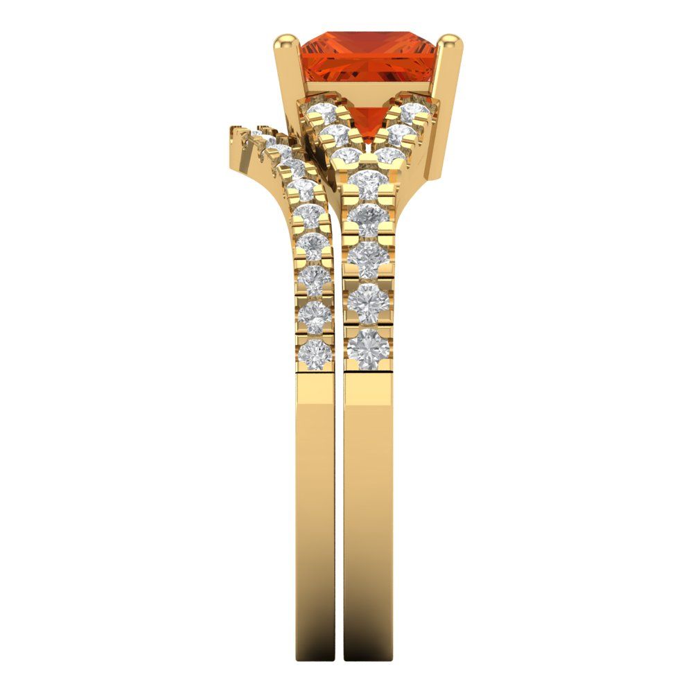 3.4 cttw Princess Cut Simulated Red Diamond Bridal Set - Solid Yellow Gold Engagement Ring & Wedding Band