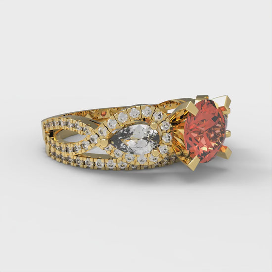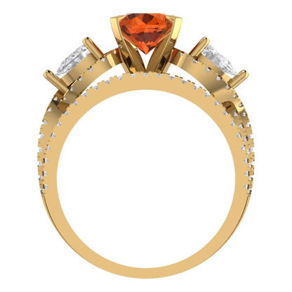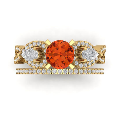 1.925 cttw Round Cut Simulated Red Diamond Bridal Set - Solid Yellow Gold Engagement Ring & Wedding Band