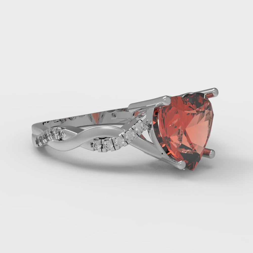 2.1 cttw Zirconia Simulated Red Diamond Solitaire with Zirconia Simulated Diamond Accents Engagement Ring - Solid Gold (VVS1, Heart Cut,8mm)