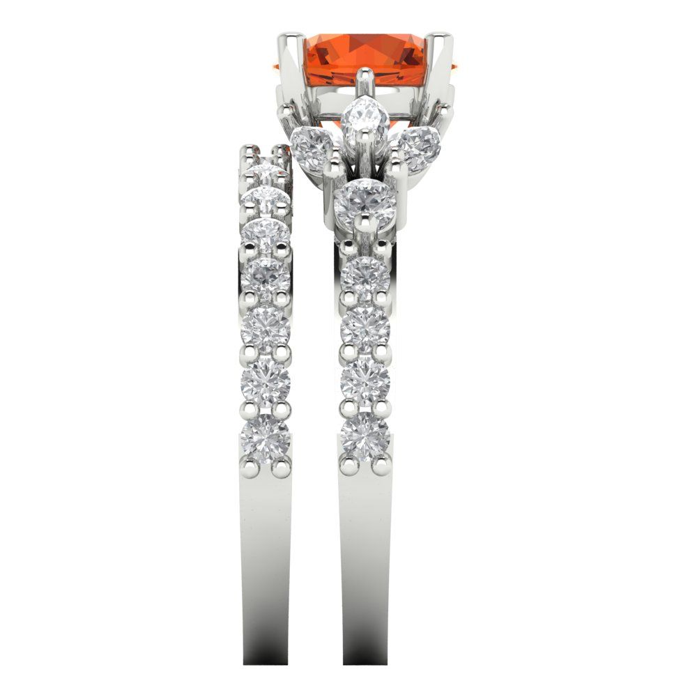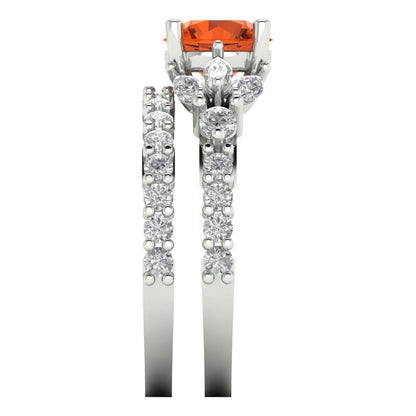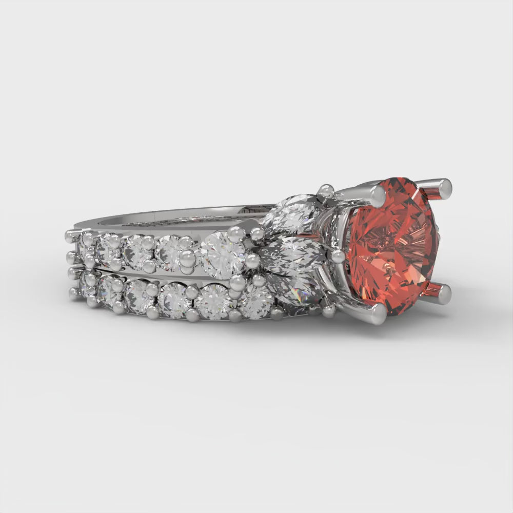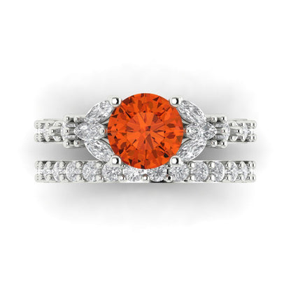 2.94 cttw Round Cut Simulated Red Diamond Bridal Set - Solid White Gold Engagement Ring & Wedding Band