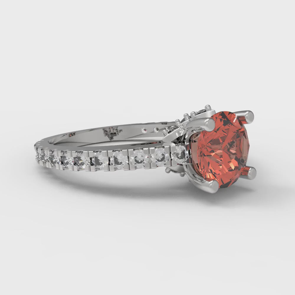 1.465 cttw Zirconia Simulated Red Diamond Solitaire with Zirconia Simulated Diamond Accents Engagement Ring - Solid Gold (VVS1, Round Cut,6.5mm)