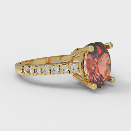 2.21 cttw Zirconia Simulated Red Diamond Solitaire with Zirconia Simulated Diamond Accents Engagement Ring - Solid Gold (VVS1, Oval Cut,9X7mm)