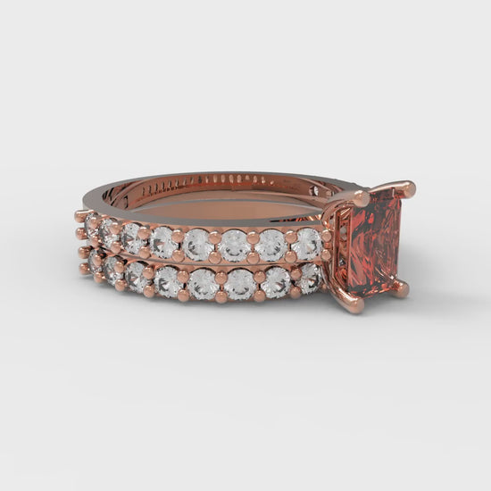 1.325 cttw Emerald Cut Simulated Red Diamond Bridal Set - Solid Rose Gold Engagement Ring & Wedding Band