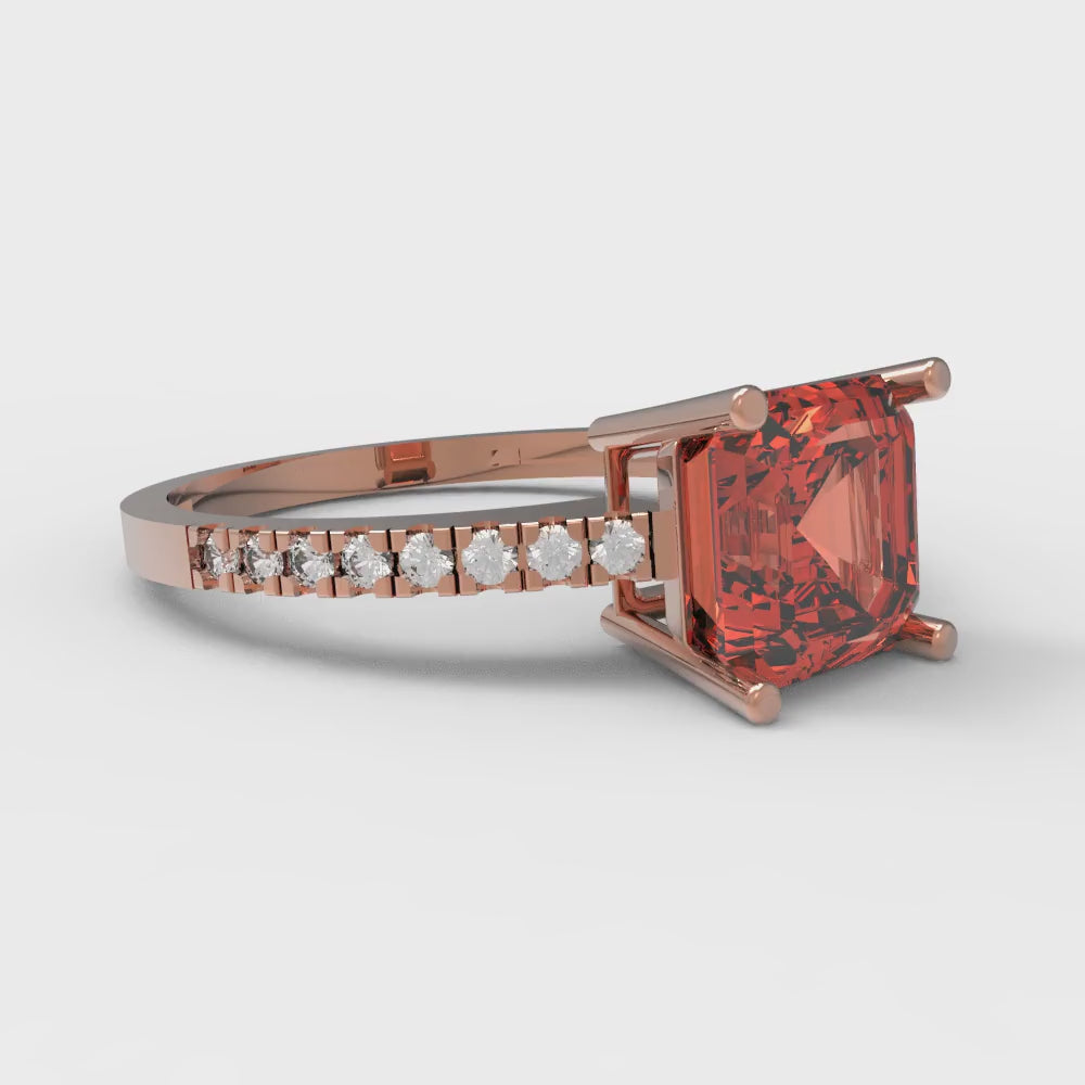2.7 cttw Zirconia Simulated Red Diamond Solitaire with Zirconia Simulated Diamond Accents Engagement Ring - Solid Gold (VVS1, Asscher Cut,6.5mm)