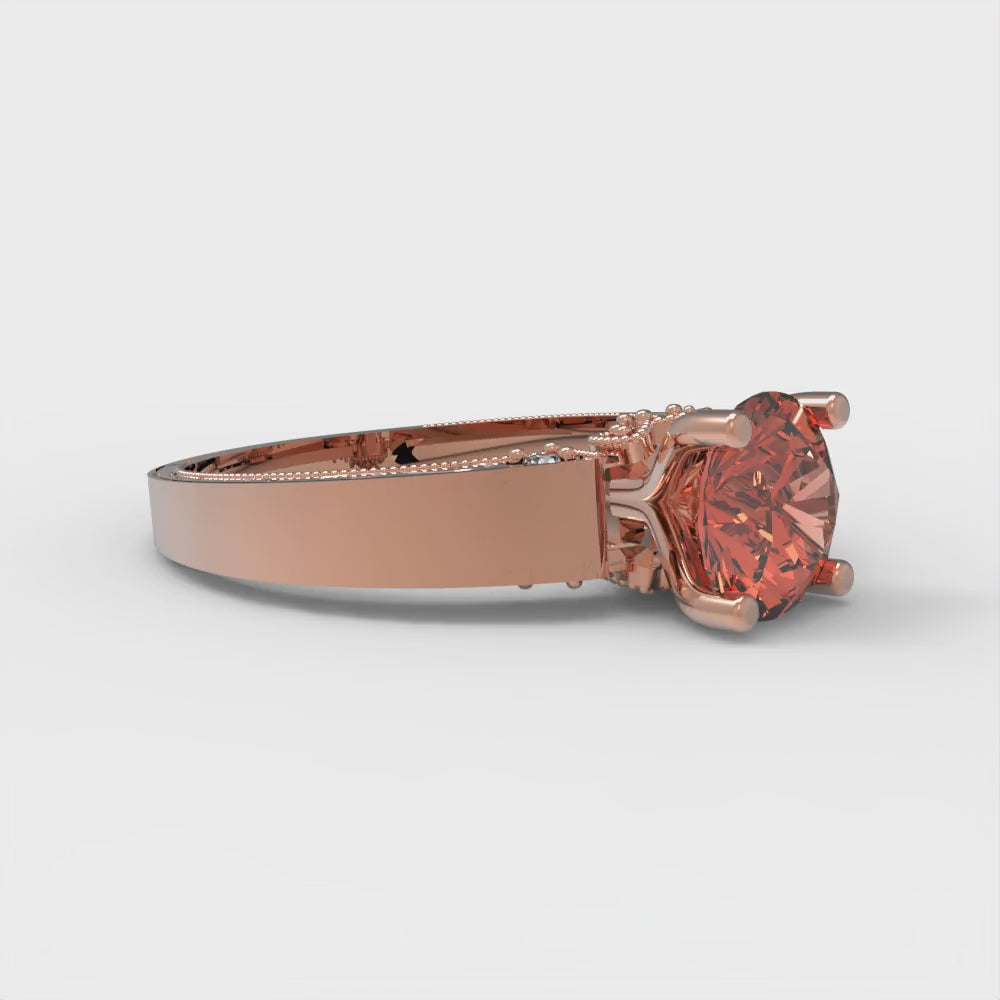 1.06 cttw Zirconia Simulated Red Diamond Solitaire with Zirconia Simulated Diamond Accents Engagement Ring - Solid Gold (VVS1, Round Cut,6.5mm)