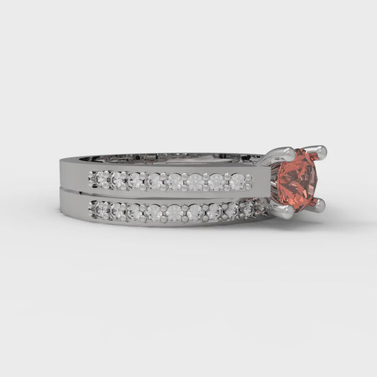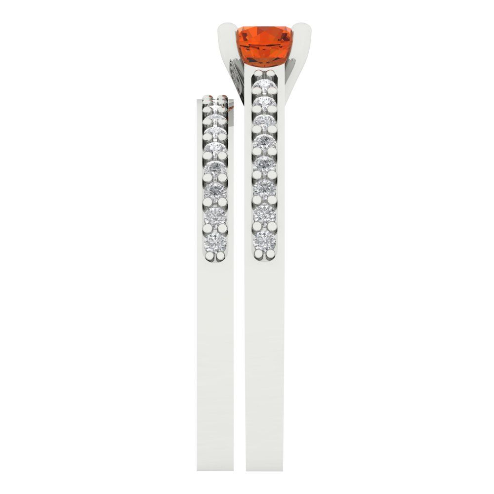 0.86 cttw Round Cut Simulated Red Diamond Bridal Set - Solid White Gold Engagement Ring & Wedding Band
