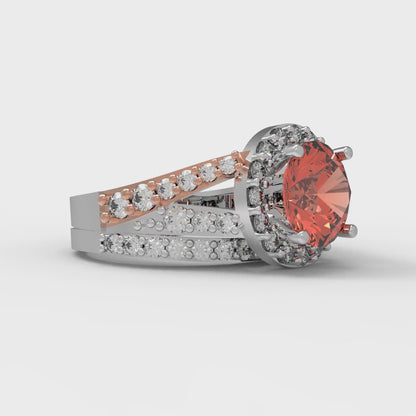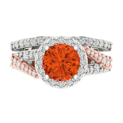 2.32 cttw Round Cut Simulated Red Diamond Bridal Set - Solid White/Rose Gold Engagement Ring & Wedding Band