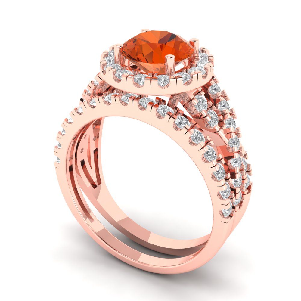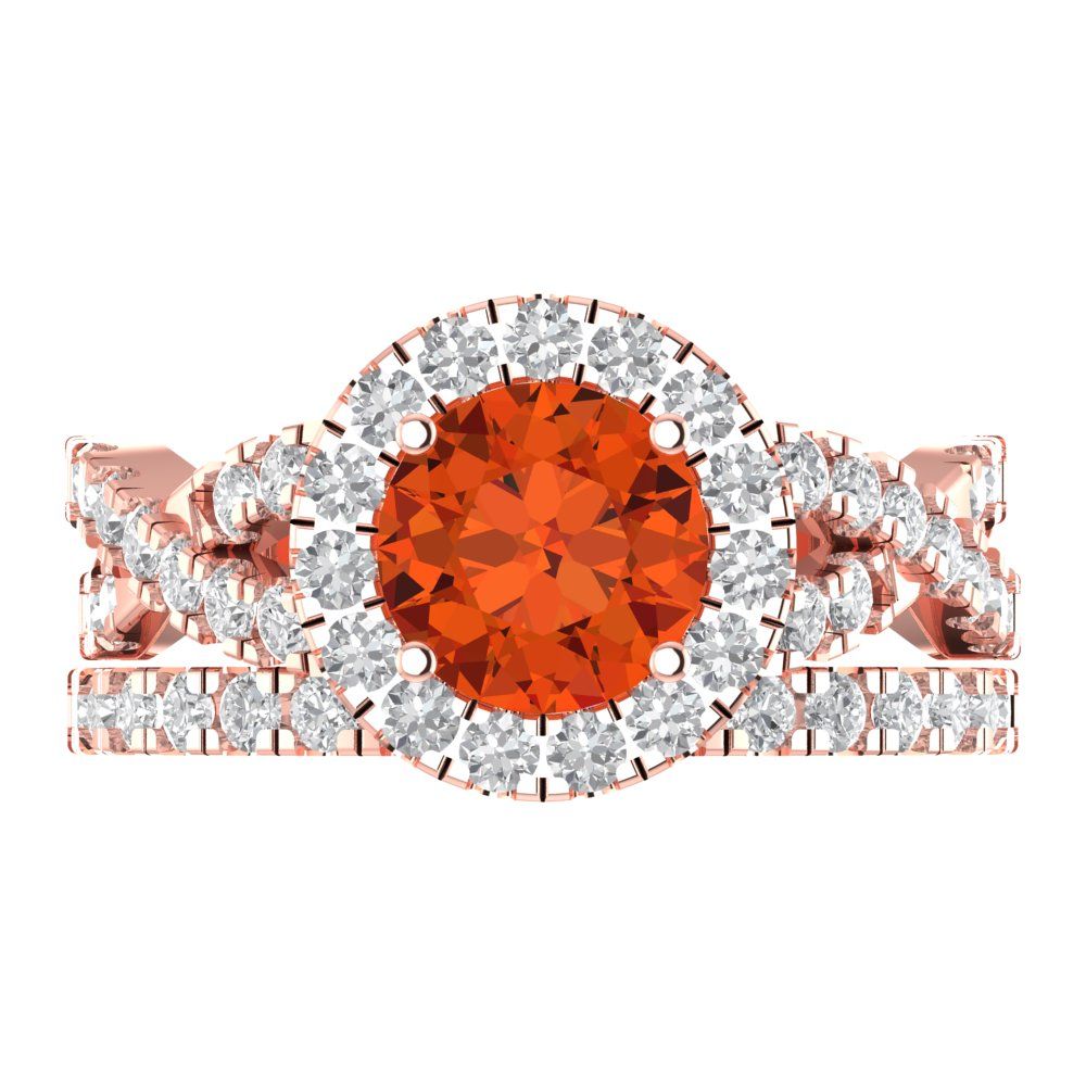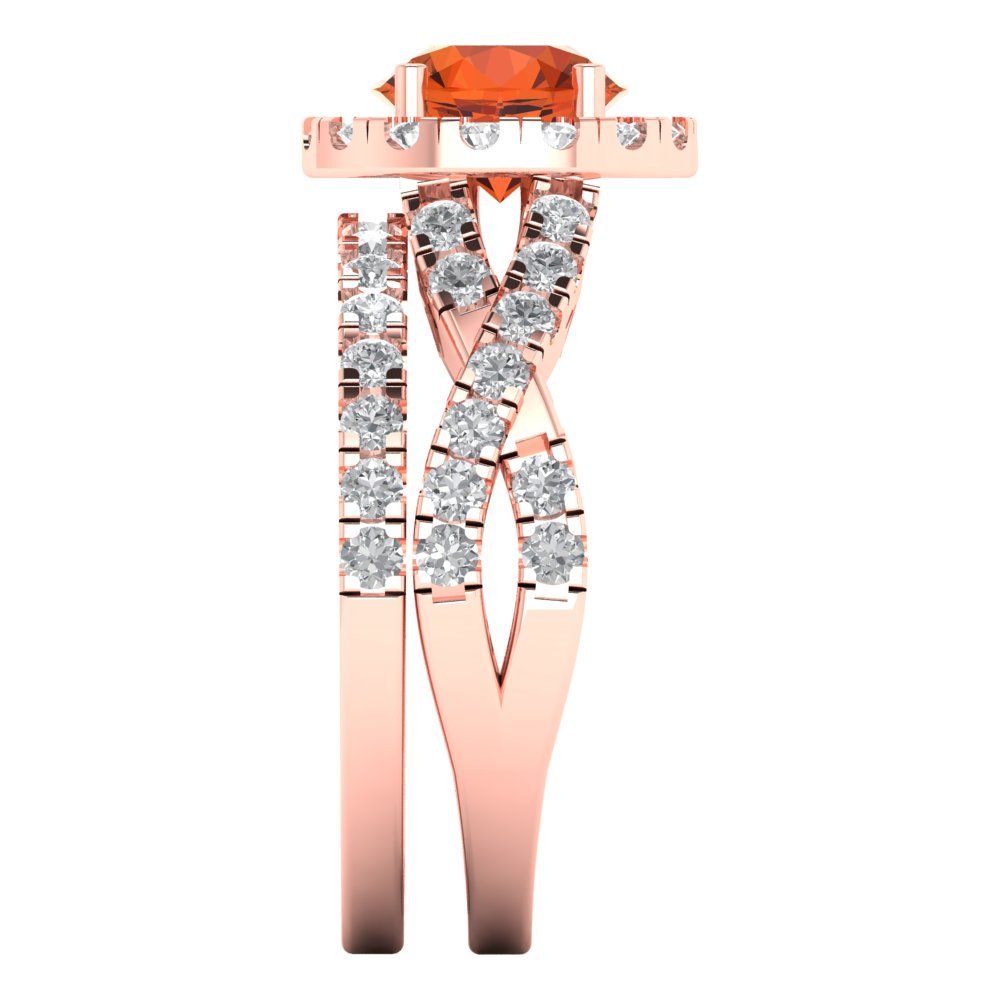 1.795 cttw Round Cut Simulated Red Diamond Bridal Set - Solid Rose Gold Engagement Ring & Wedding Band