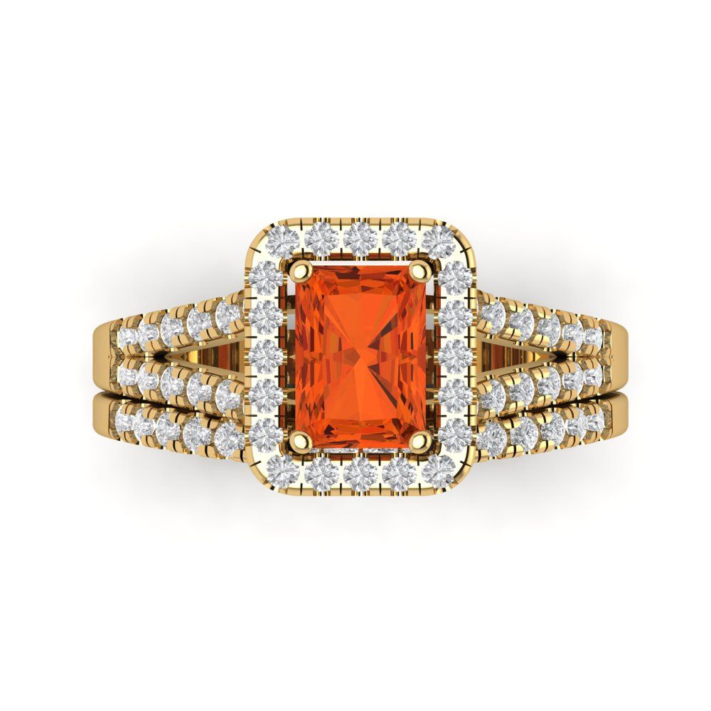 1.72 cttw Emerald Cut Simulated Red Diamond Bridal Set - Solid Yellow Gold Engagement Ring & Wedding Band
