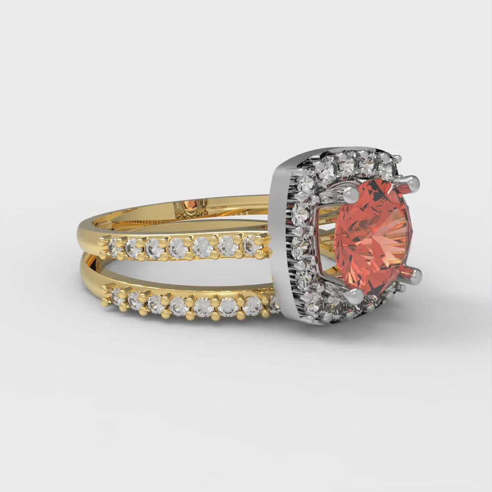 1.495 cttw Round Cut Simulated Red Diamond Bridal Set - Solid Yellow/White Gold Engagement Ring & Wedding Band