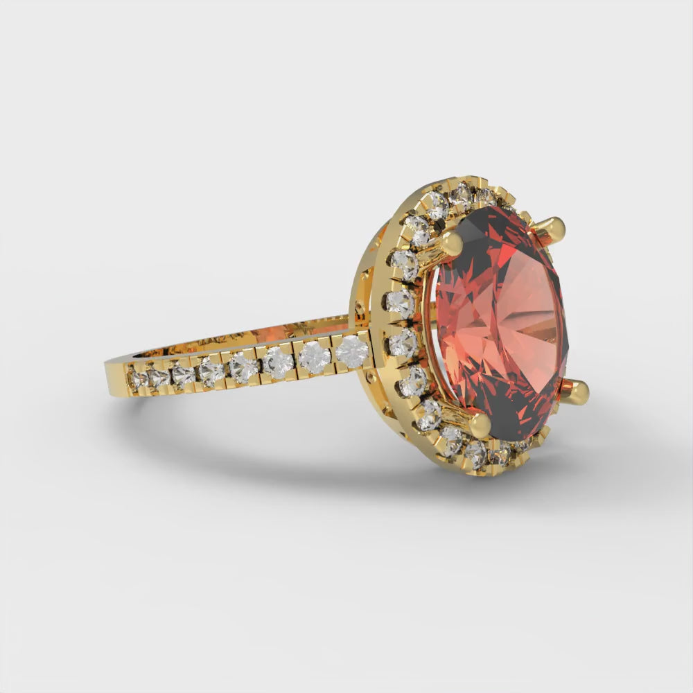 2.27 cttw Zirconia Simulated Red Diamond Solitaire with Zirconia Simulated Diamond Accents Engagement Ring - Solid Gold (VVS1, Oval Cut,9X7mm)