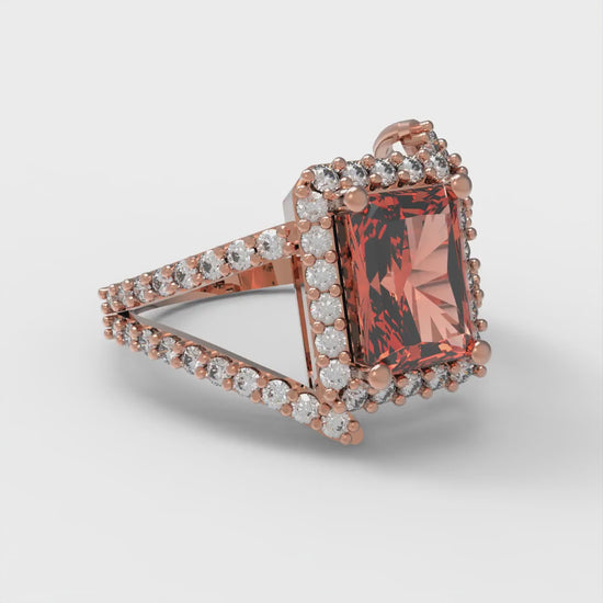 1.935 cttw Zirconia Simulated Red Diamond Solitaire with Zirconia Simulated Diamond Accents Engagement Ring - Solid Gold (VVS1, Emerald Cut,7.5x5.5mm)