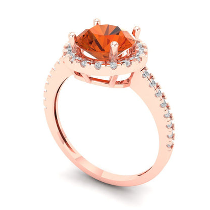 1.8 cttw Zirconia Simulated Red Diamond Solitaire with Zirconia Simulated Diamond Accents Engagement Ring - Solid Gold (VVS1, Round Cut,7.5mm)